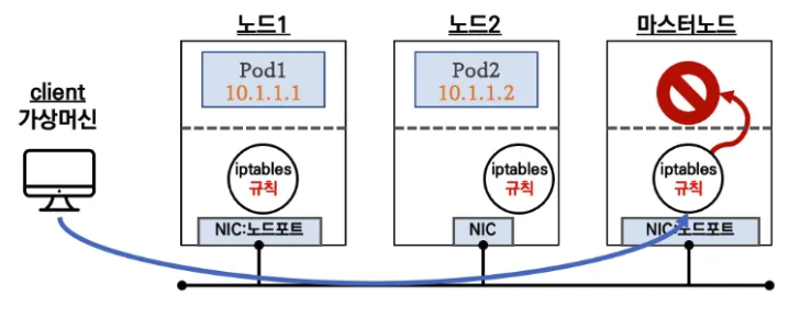 바로 파드가 배포되지 않은 노드에 접근할 경우, 서비스 연결이 불가능하다는 것입니다.