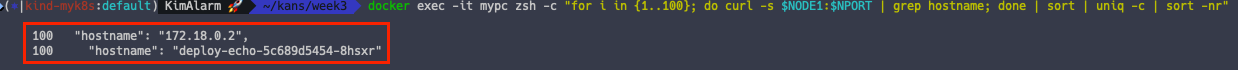 docker exec -it mypc zsh -c "for i in {1..100}; do curl -s $NODE1:$NPORT | grep hostname; done | sort | uniq -c | sort -nr"