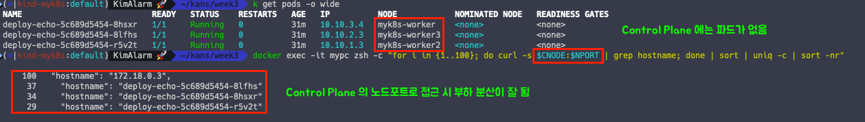 이제 파드는 노드1, 노드3 에만 배포되어 있습니다.