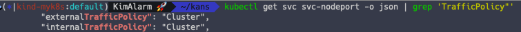 kubectl get svc svc-nodeport -o json | grep 'TrafficPolicy"'