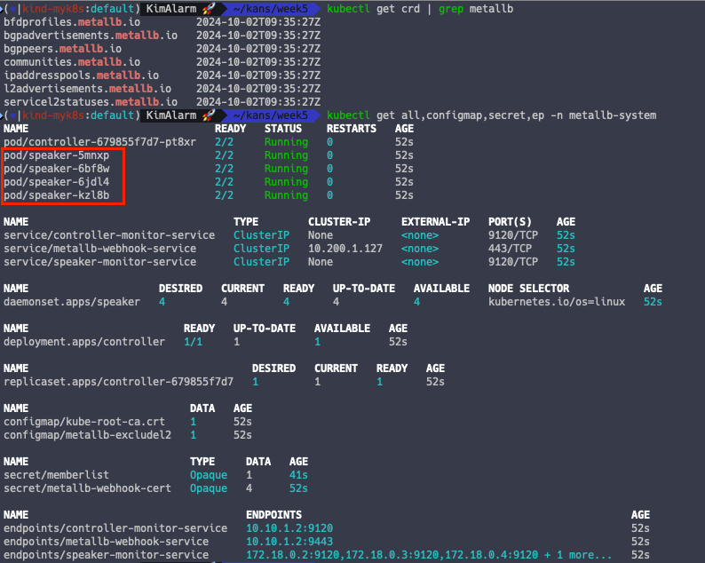 MetalLB 는 클라우드 환경에서 배포할 수 없기 때문에, kind 를 통해 실습환경을 구성했습니다.