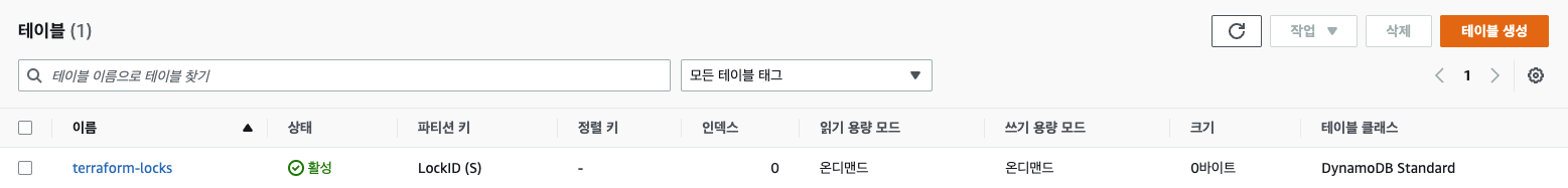 - 배포와 동시에 DynamoDB Table 에 가서 확인해보면, lock 이 걸려있는 것을 확인할 수 있다.