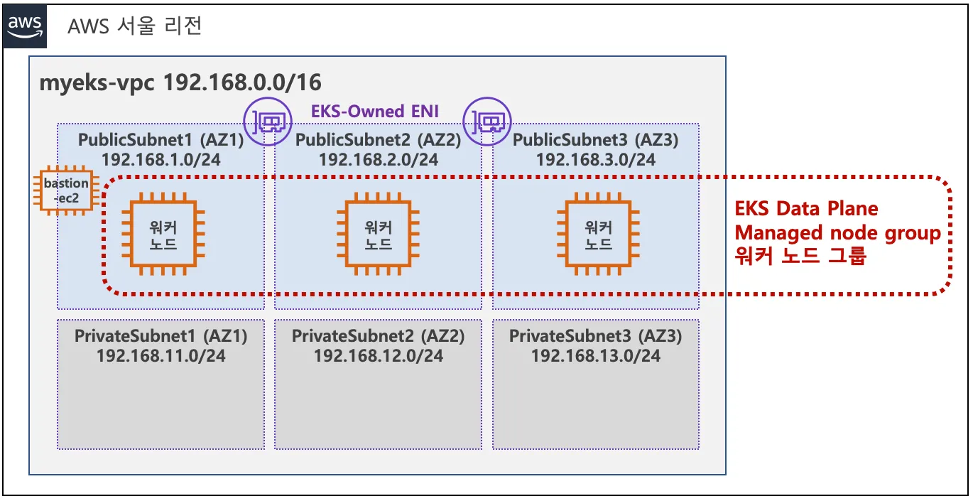 EKS 노드의 기본 구성은 아래 그림과 같습니다.
