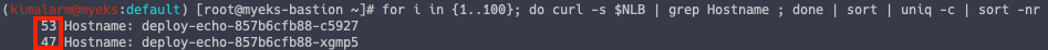 for i in {1..100}; do curl -s $NLB | grep Hostname ; done | sort | uniq -c | sort -nr