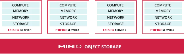 운영환경 MinIO 배포는 동종 스토리지 및 컴퓨팅 리소스를 갖춘 최소 4개의 MinIO 호스트로 구성됩니다.