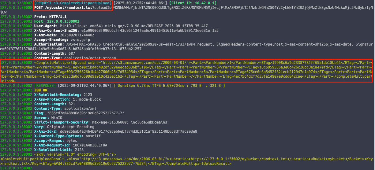 S3 처럼 MinIO 도 대용량 파일 업로드 시 멀티파트 업로드를 지원합니다.