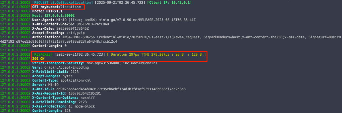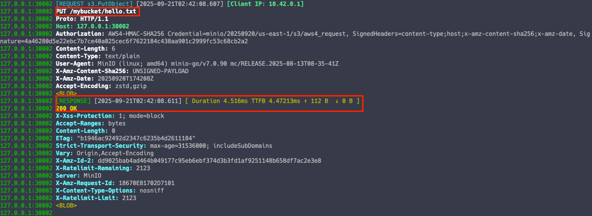 mc admin trace 명령어를 통해 MinIO Trace 를 모니터링 할 수 있습니다.