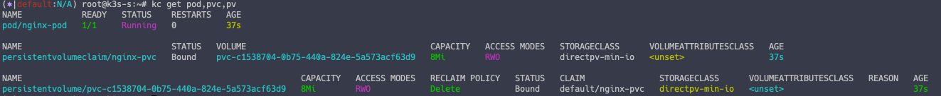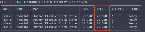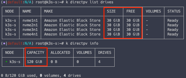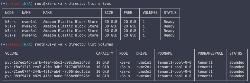 MinIO 를 배포하면서 DirectPV 를 가져다 사용했기 떄문에 DirectPV 의 가용 용량이 줄어든 것을 알 수 있습니다.