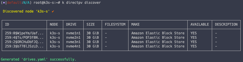 각 스토리지는 DirectPV 실습에 사용될 예정으로, root Volume 1개 + DirectPV 4개로 이루어져 있습니다.
