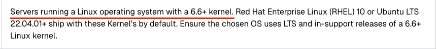 1. 6.6 버전 이상의 커널을 실행 중인 Linux OS Server