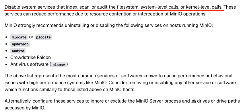 MinIO 공식 문서를 보면 MinIO 를 운영 환경에서 동작시키기 위한 Software 체크리스트가 존재합니다.