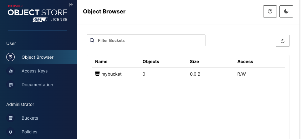 설정이 다 되었다면 mybucket 을 생성해놓습니다.