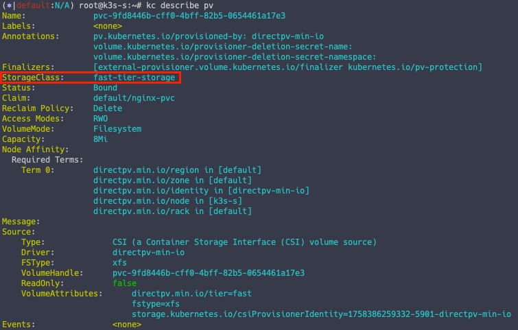 ./create-storage-class.sh fast-tier-storage 'directpv.min.io/tier: fast'