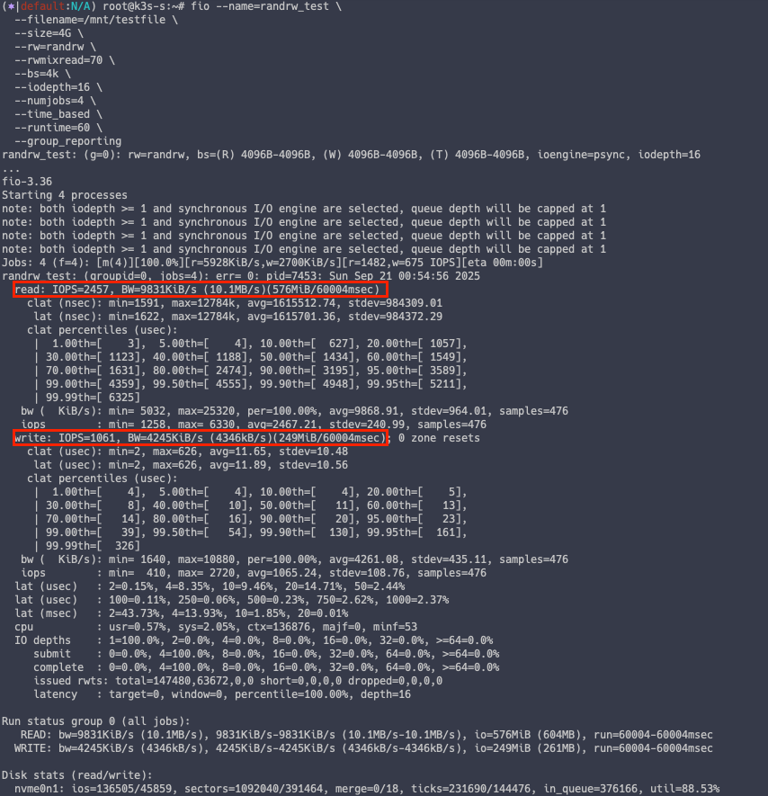 # 4k 랜덤 읽기/쓰기, iodepth=16, numjobs=4