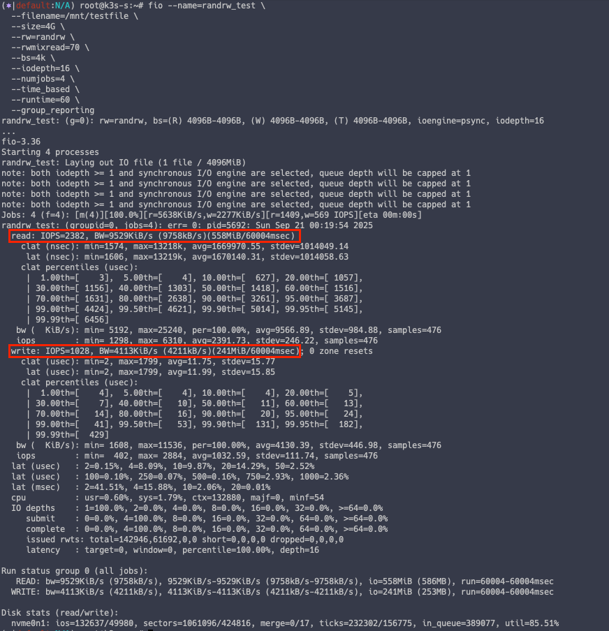 ## --bs=4k : 4KB 블록 → IOPS 측정용