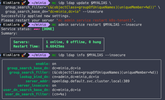 LDAP 도 MinIO cli 를 통해 조회할 수 있습니다.