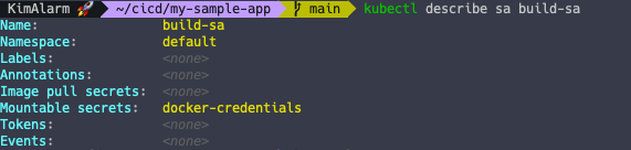 # ServiceAccount 에 Secret 속성 지정