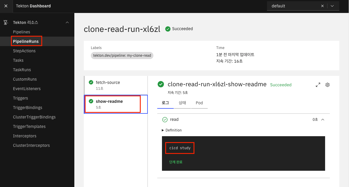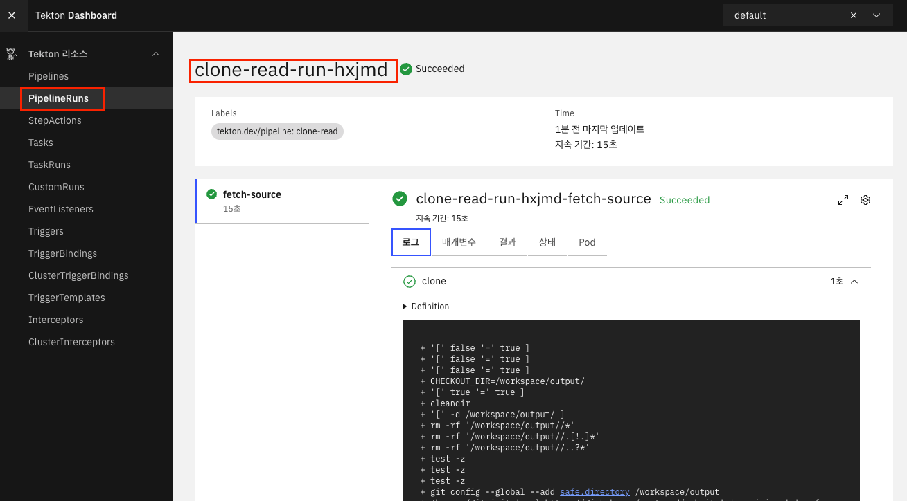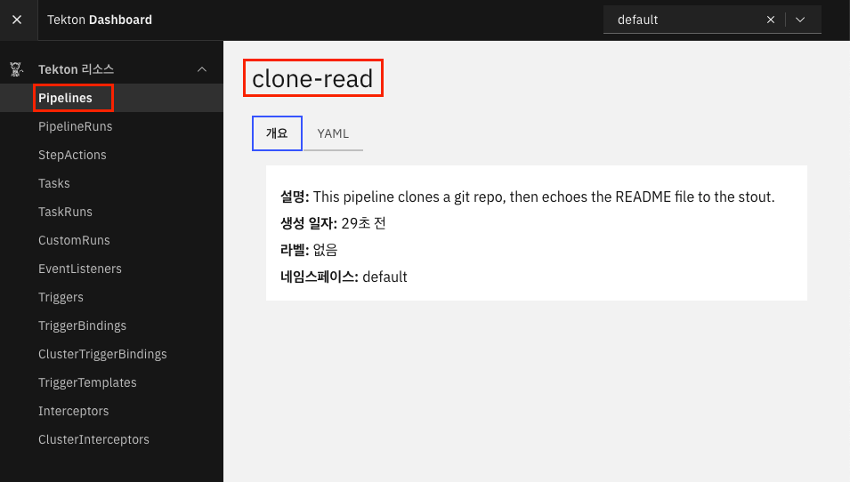 # Tekton dependency 파이프라인(pipeline) 설치 확인