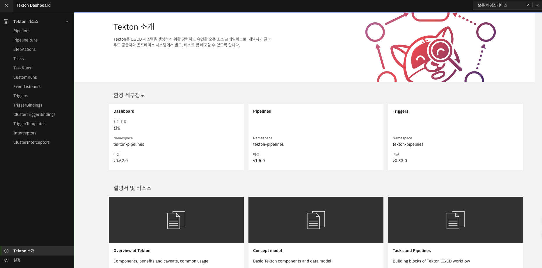 여기에서는 Pipeline, Trigger, Dashboard, Tekton CLI 만 설치하겠습니다.