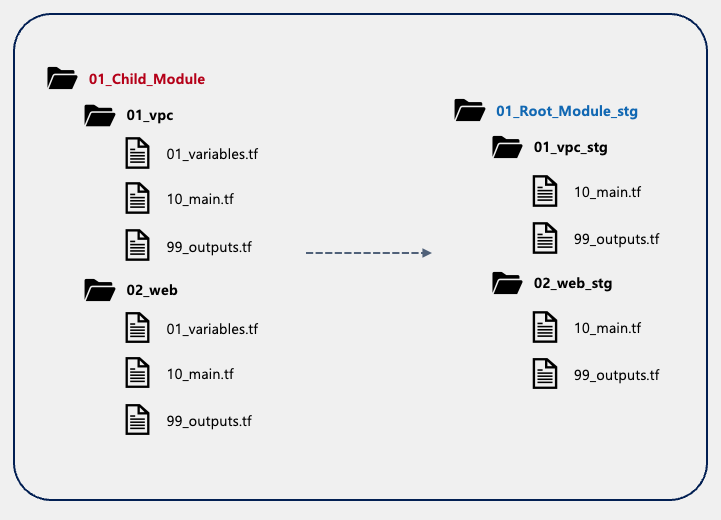 - Root Module 에서는 Child Module 에서 처리한 변수값을 실제 값으로 가져온다.