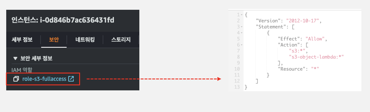 AWS 의 Metadata 접속 IP 는 169.254.169.254 입니다. 서버 내부에서 다음과 같은 명령어를 입력하여 IAM Role 이 어떻게 권한을 인증하는 지 확인해봅시다.