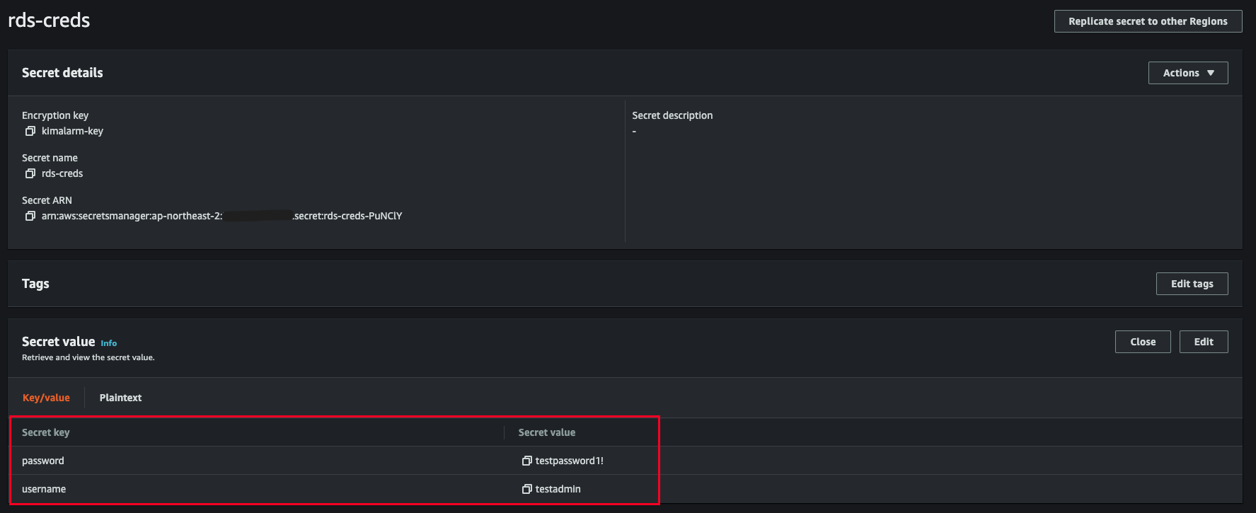 RDS 가 Secret Manager 에 있는 정보를 가져온 것을 확인할 수 있습니다.
