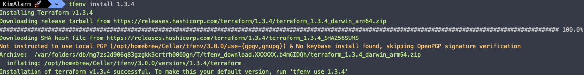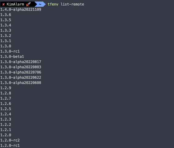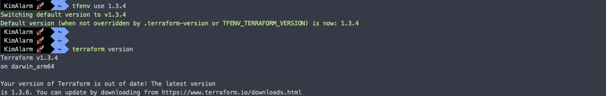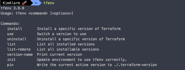 IaC/Terraform [tfenv] Terraform 버전 관리 - 테라폼을 사용하다보면 Production 환경마다 다른 테라폼 버전이 필요할 때가 있습니다. 이런 경우에 테라폼 버전관리 용으로 사용할 수 있는 오픈소스 도구인 tfenv 를 소개해보고자 합니다. 현재 테라폼 버전 이런 오류가 발생하면 머리가 아픕니다. Error: Unsupported Terraform Core version required_version = "~> 1.3.4" 1. tfenv 설치 먼저 tfenv 를 설치해봅시다. Mac OS 는 brew 를 사용해서 설치합니다. brew install tfenv Mac OS 가 아니면 아래의 git 주소에서 manual 설치를 진행합니다. GitHub - tfutils/tfenv: Terraform version manager Terraform version manager. Contribute to tfutils/tfenv development by creating an account on GitHub. github.com 2. terraform version 관리 2.1. 설치 가능한 테라폼 버전 확인 tfenv list-remote 2.2. 특정 버전 설치 1.3.4 버전 설치 tfenv install 1.3.4 1.3.4 버전 사용 tfenv use 1.3.4 설치된 테라폼 버전 확인 tfenv list 다시 처음에 실패했던 테라폼 코드를 실행시켜 봅시다. 문제 없이 Terraform 버전이 잘 변경된 것을 알 수 있습니다. 공유하기 게시글 관리 Cloud Alarm 'IaC > Terraform' 카테고리의 다른 글 Terraform 으로 Azure vNet 배포하기 (0) 2023.09.03 [setproduct] 테라폼에서 Cartesian Product 반복하기 (1) 2022.12.12 6주차(2)_Terraform 민감정보 관리 (암호 관리) (0) 2022.12.06 6주차(1)_Terraform 민감정보 관리 (Provider) (0) 2022.12.04 5주차(4)_Terraform 조건문 (0) 2022.12.02 Contents 당신이 좋아할만한 콘텐츠 Terraform 으로 Azure vNet 배포하기 2023.09.03 [setproduct] 테라폼에서 Cartesian Product 반복하기 2022.12.12 6주차(2)_Terraform 민감정보 관리 (암호 관리) 2022.12.06 6주차(1)_Terraform 민감정보 관리 (Provider) 2022.12.04 댓글 0 + 이전 댓글 더보기