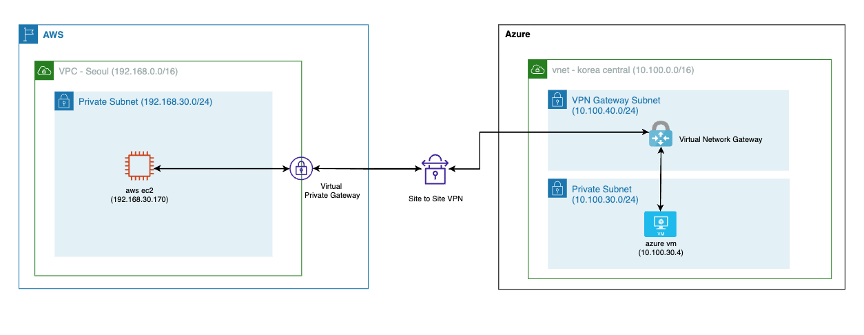 연동할 클라우드는 AWS 와 Azure 이며, 간략하게 아래와 같은 아키텍처로 구성되어 있다.
