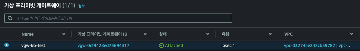 - 생성 후, VPN 을 연결할 VPC 에 Attach 작업을 진행한다.