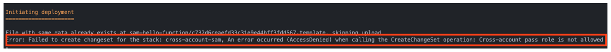 An error occurred (AccessDenied) when calling the CreateChangeSet operation: Cross-account pass role is not allowed.