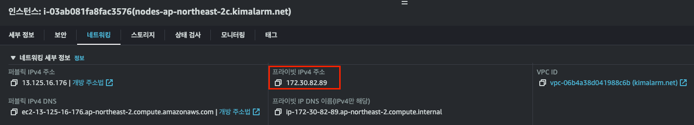 만약 Private Subnet 에 배포된 노드라면 NAT IP 를 사용한다는 것을 알 수 있습니다.