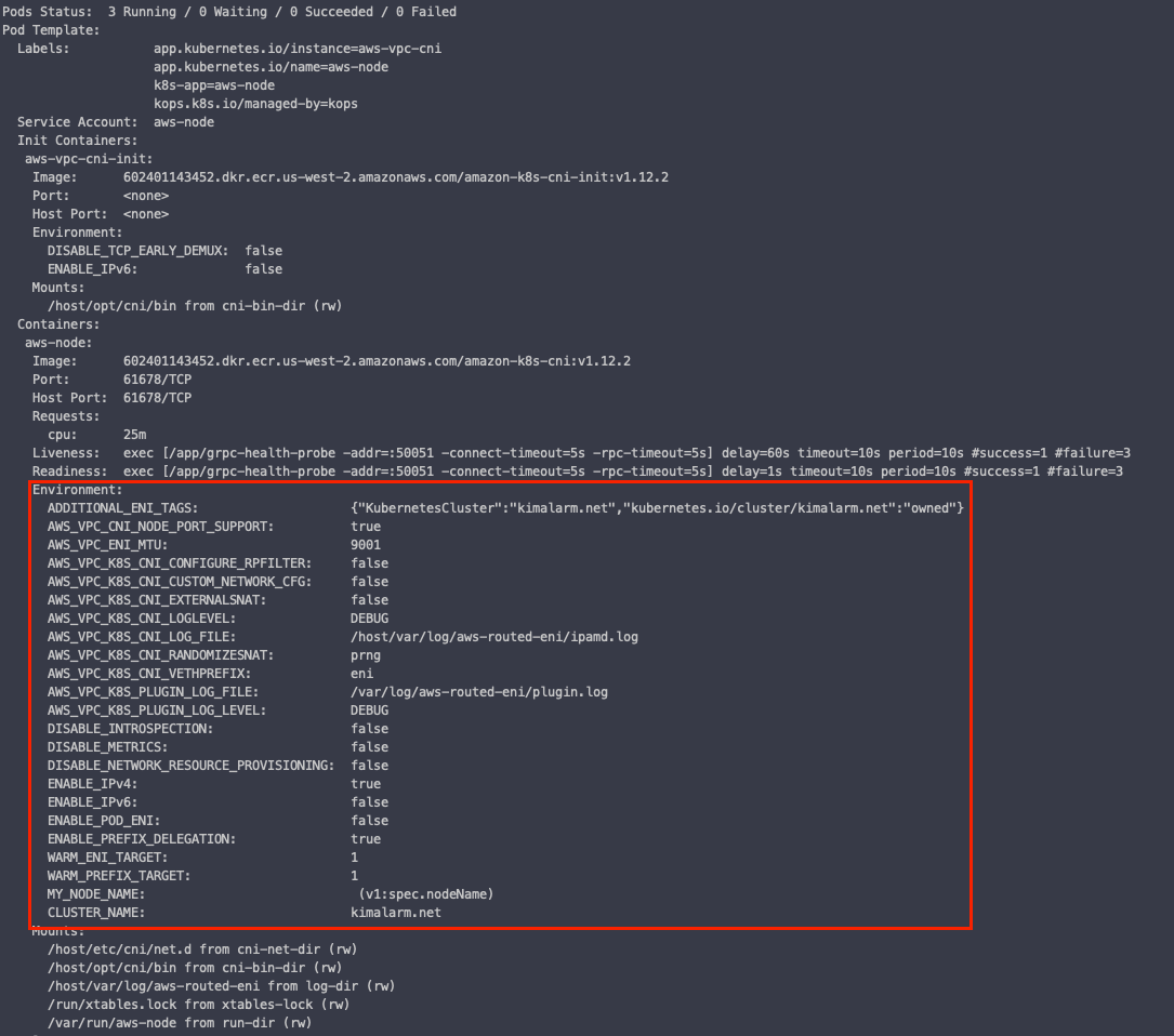 kubectl describe daemonsets.apps aws-node -n kube-system