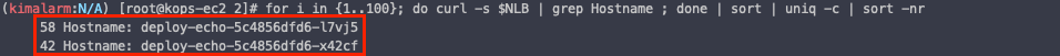 for i in {1..100}; do curl -s $NLB | grep Hostname ; done | sort | uniq -c | sort -nr