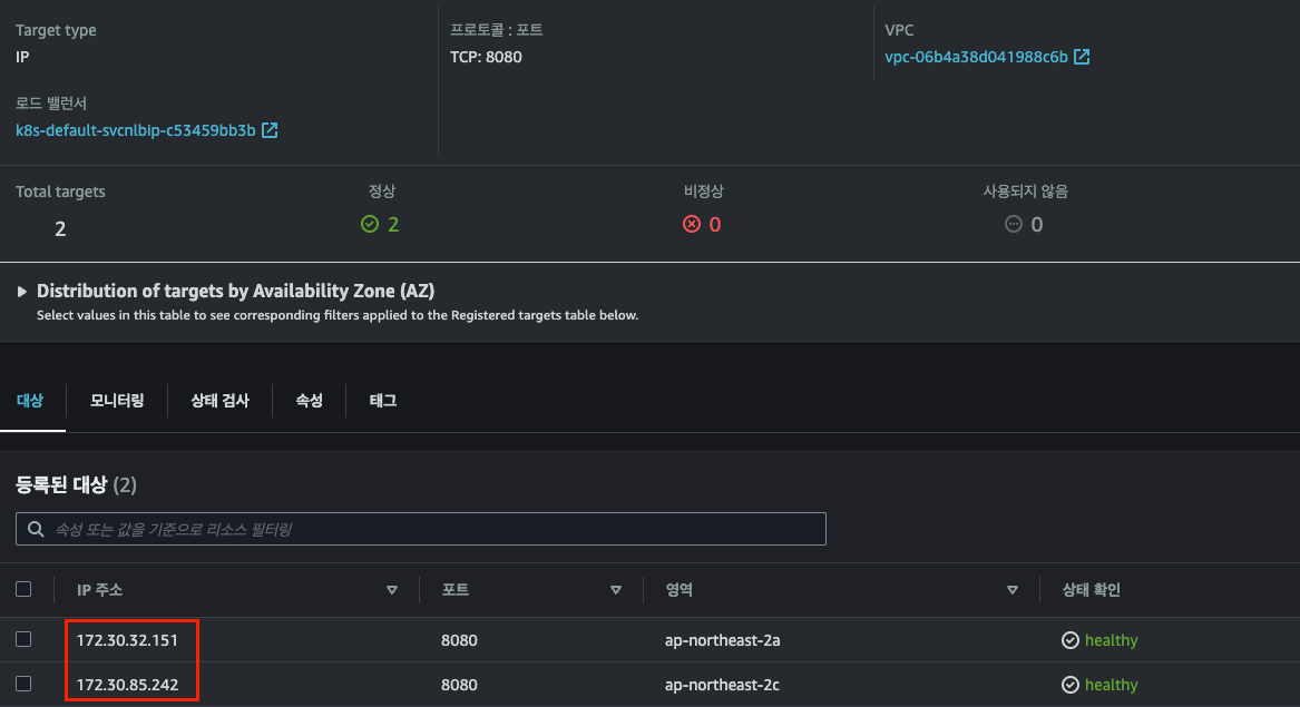 - 특이한 것은 대상 그룹에 등록된 IP 가 현재 서비스 중인 Pod 의 IP 와 Direct 로 연결된다는 것입니다.