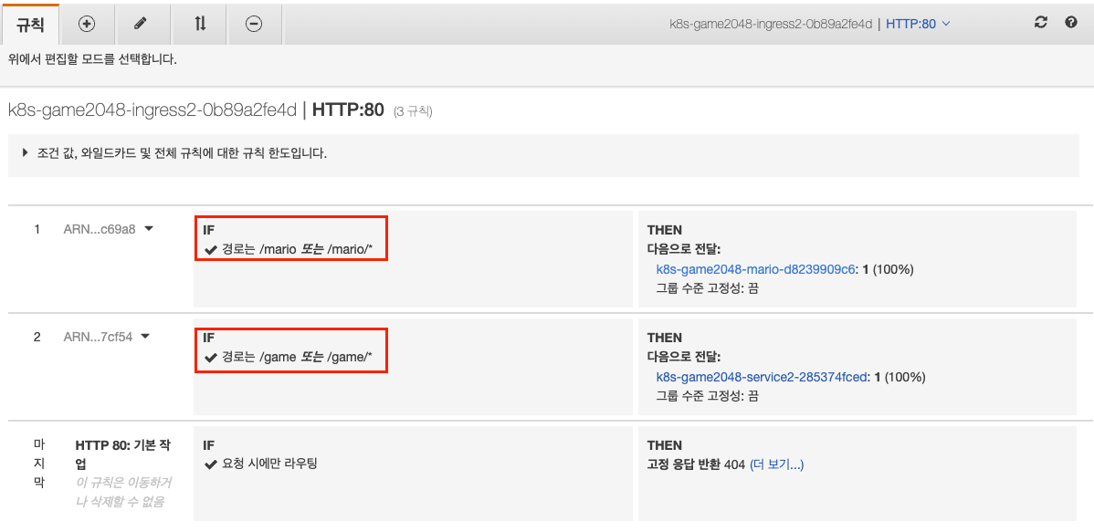 실습을 위해 마리오 게임 또한 game-2048 Namespace 위에 배포합니다.