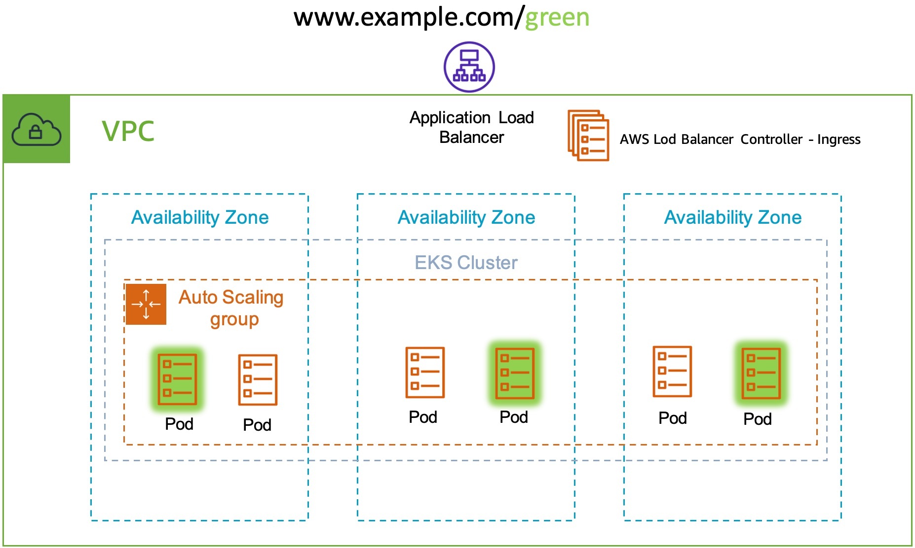 - 2개의 테스트용 Pod 를 Deployment 형식으로 배포하고, NLB 타입의 로드밸런서를 해당 Deployment 와 연결해줍니다.