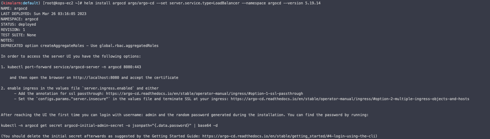 helm install argocd argo/argo-cd --set server.service.type=LoadBalancer --namespace argocd --version 5.19.14
