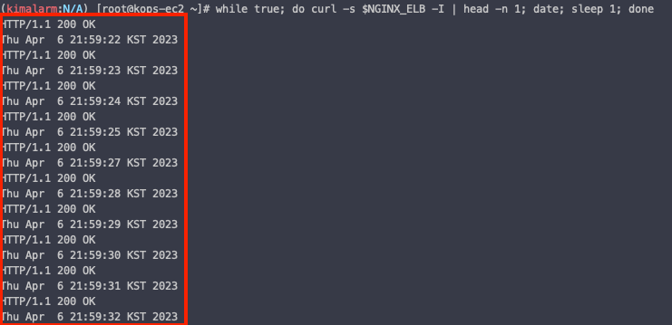 while true; do curl -s $NGINX_ELB -I | head -n 1; date; sleep 1; done