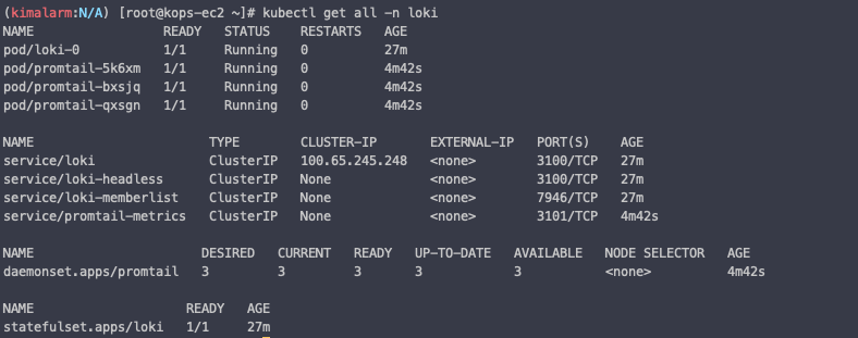 Promtail 은 데몬셋으로 실행되며, 운영 중인 모든 노드에 자동으로 설치.