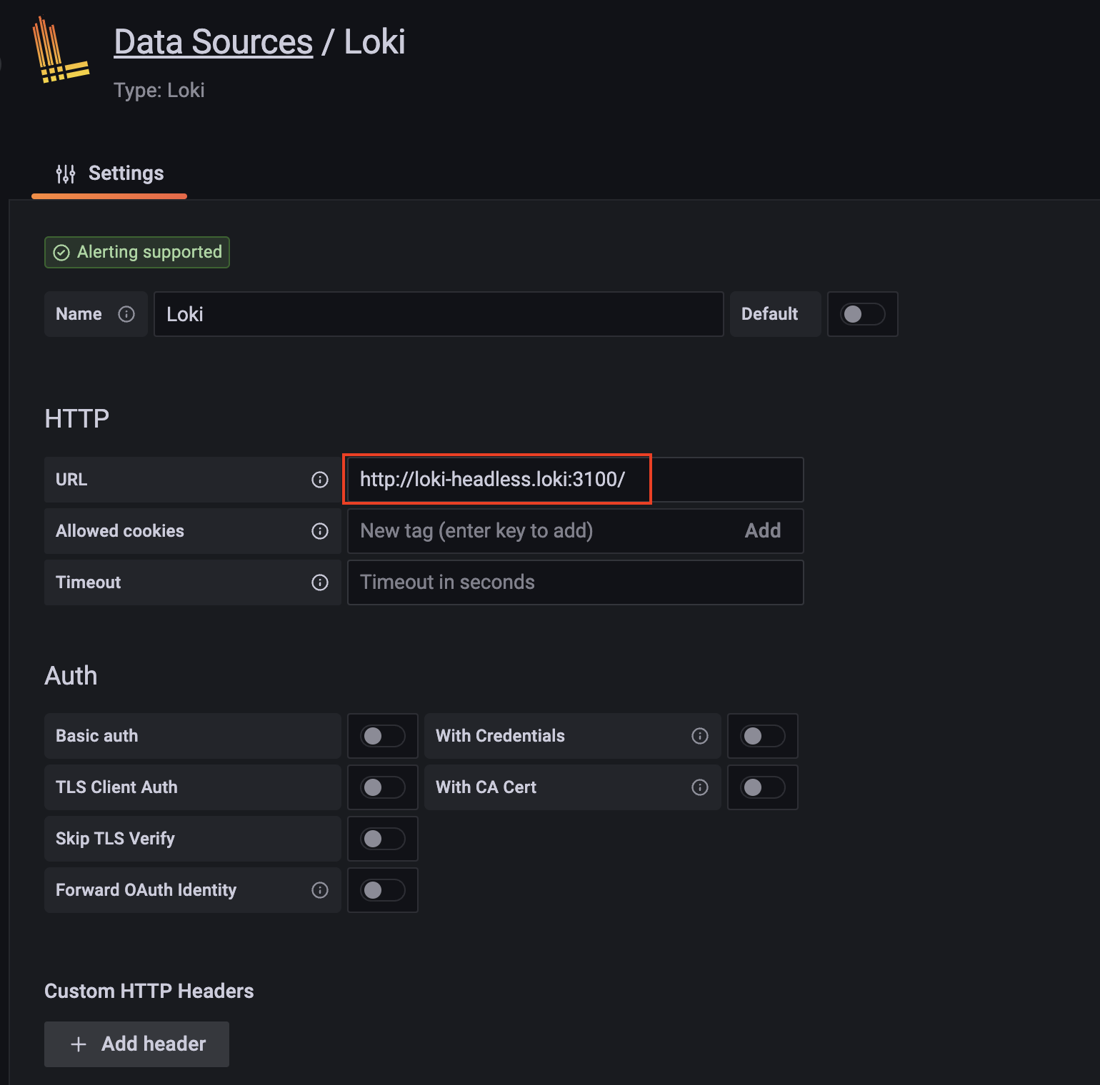 - Config Client : 로키 파드와 연결하기 위한 로키 서비스 이름과 포트 번호