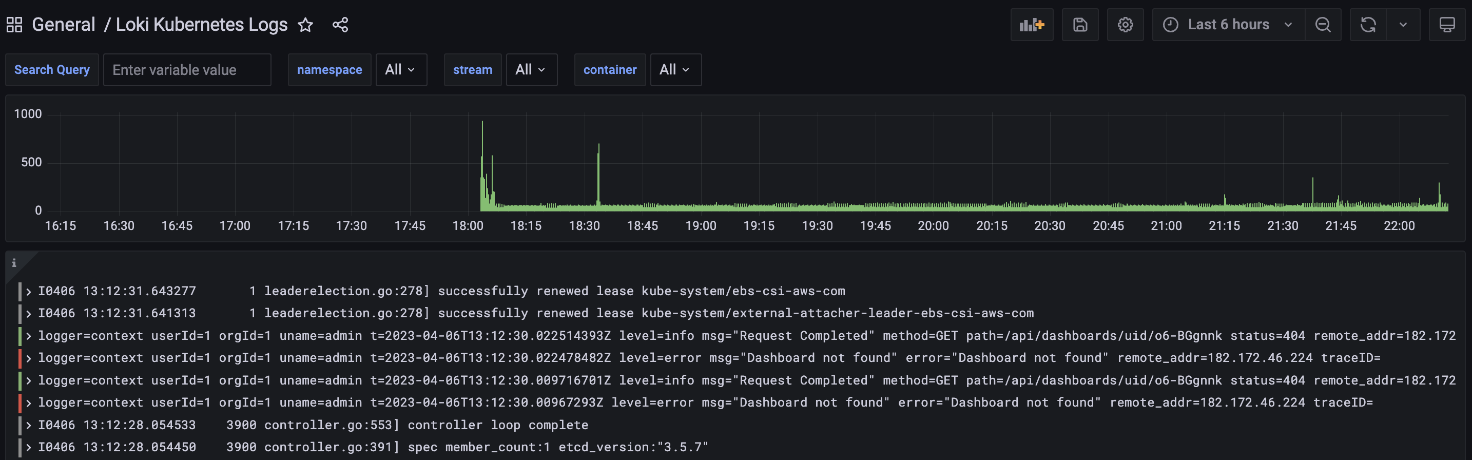 로키에서 수집된 전체 로그를 그라파나에서 확인할 수 있습니다.