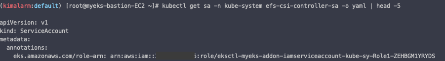 kubectl get sa -n kube-system efs-csi-controller-sa -o yaml | head -5
