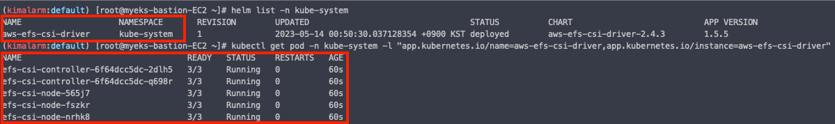 다음 명령어로 EFS CSI Driver 설치를 확인할 수 있습니다.