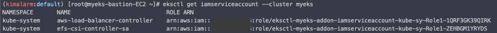 eksctl get iamserviceaccount --cluster myeks