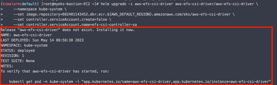 helm upgrade -i aws-efs-csi-driver aws-efs-csi-driver/aws-efs-csi-driver \