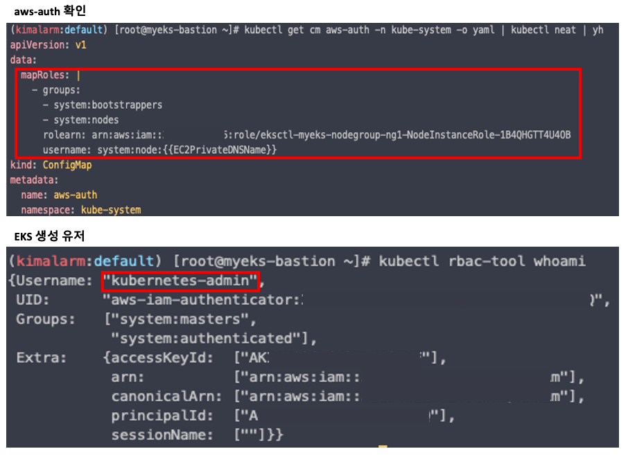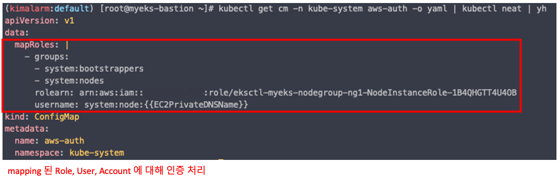 - AWS IAM 서비스와 EKS RBAC 을 연결시켜주는 EKS 의 인증 설정입니다.