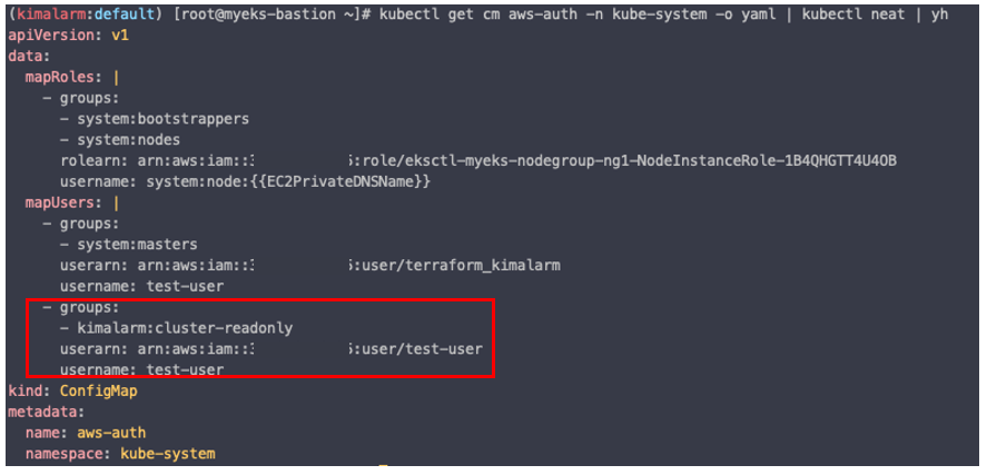 kubectl get cm -n kube-system aws-auth -o yaml