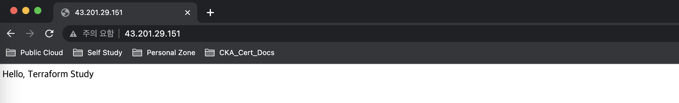 이후 Terraform apply 를 통해 코드를 실행하고 실제 서버의 IP로 들어가봅니다.