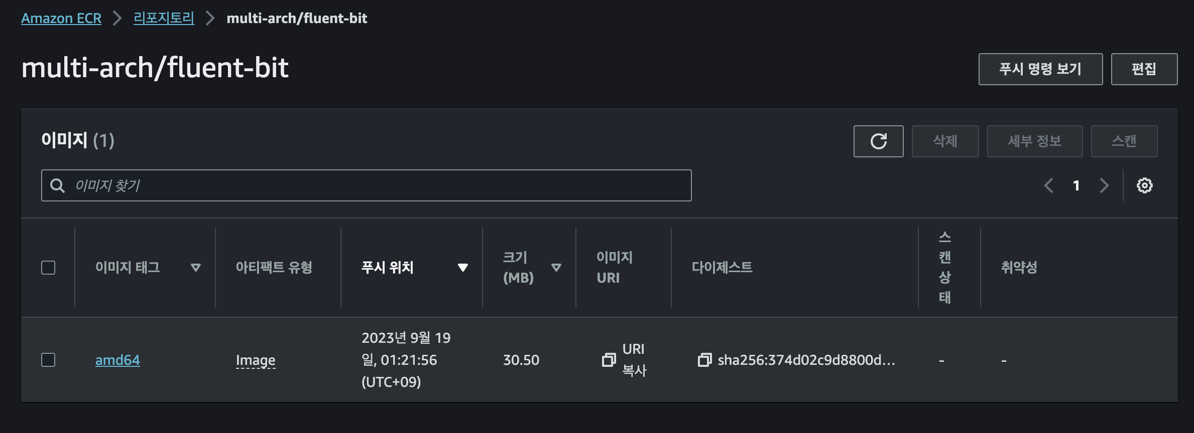 ECR 콘솔에서 해당 이미지를 확인합니다.