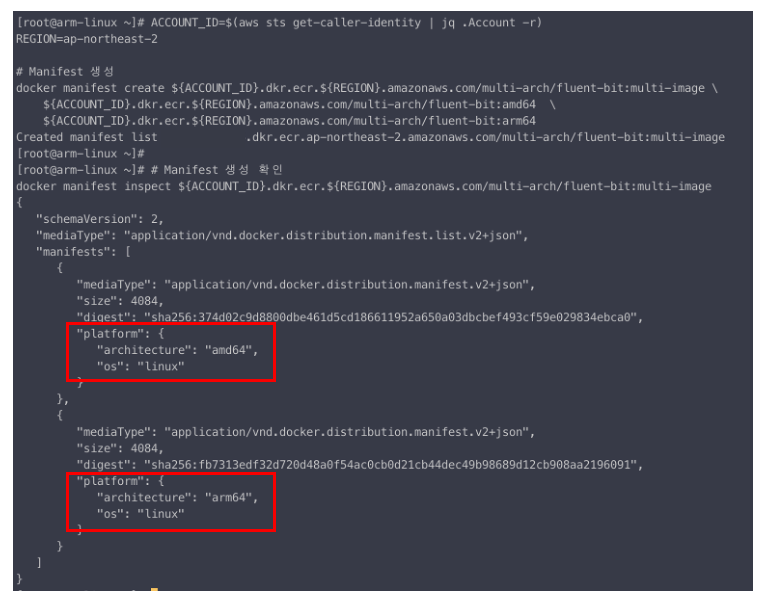 docker manifest inspect ${ACCOUNT_ID}.dkr.ecr.${REGION}.amazonaws.com/multi-arch/fluent-bit:multi-image